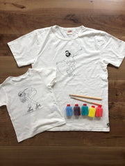 Tシャツとオリジナルペイントキット(赤、青、緑、黄、茶)がセットになっております。