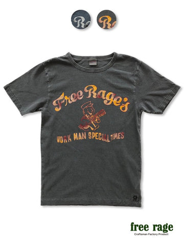 独特の色感やムラ感はピグメント染め加工によるもので、フロッキープリントを併用し、長年着古したようなヴィンテージTシャツのような風合いに仕上げている