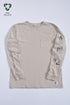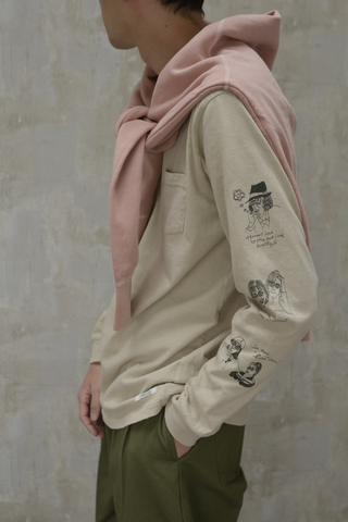 様々な名作ドラマとそのドラマの名言が描かれたグラフィックを袖プリントに落とし込んだアイテム。