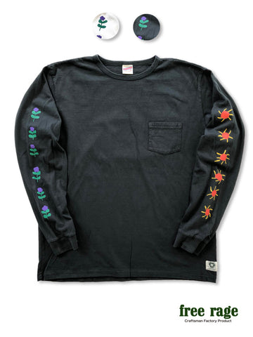 綺麗な花には太陽の存在が不可欠という意味が込められたグラフィックを袖にプリント