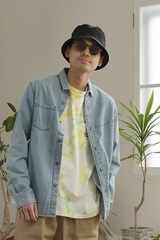 ヴィンテージデニムのような独特な奥行きのある色落ち感を表現するため、1本の糸に太い部分や細い部分が織り交ぜられている8ozのムラ糸デニム生地を使用し、わざとらしい加工感にならないよう段階に分けて特殊な洗い加工を施している